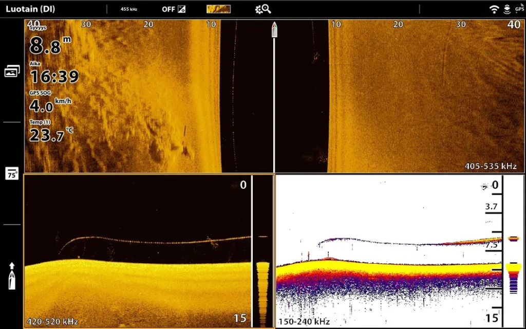 Jos vesillä ollessasi näet luotaimesi ruudulla haamuverkon, niin ota siitä kuva joko kuvakaappauksena tai kännykällä. Mene seuraavaksi SYKE:n Rosgis, nettisivulle ja ilmoita havaintosi siellä: https://wwwi.ymparisto.fi/citobs/Rosgis/